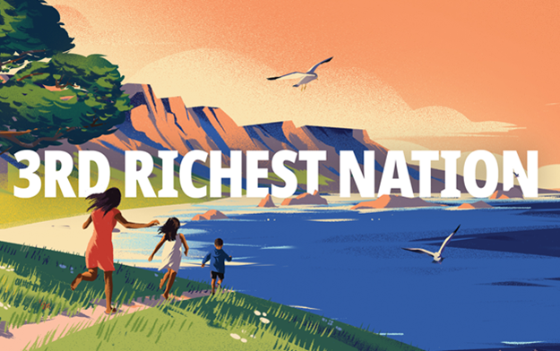 "3rd Richest Nation" campaign builds a fictional country with tourism, media, and an AI-generated President made from survivors' faces
