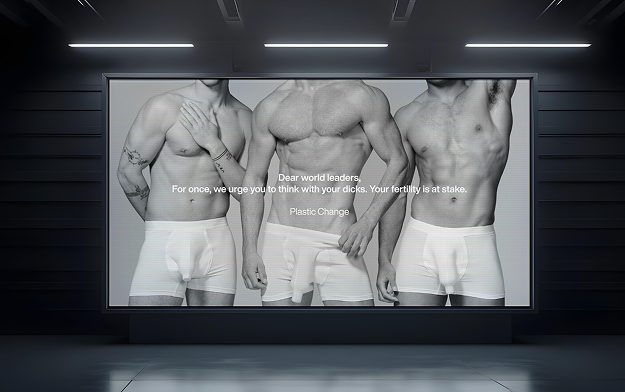 Plastic Change's campaign links microplastic pollution to male infertility, urging action with provocative humor