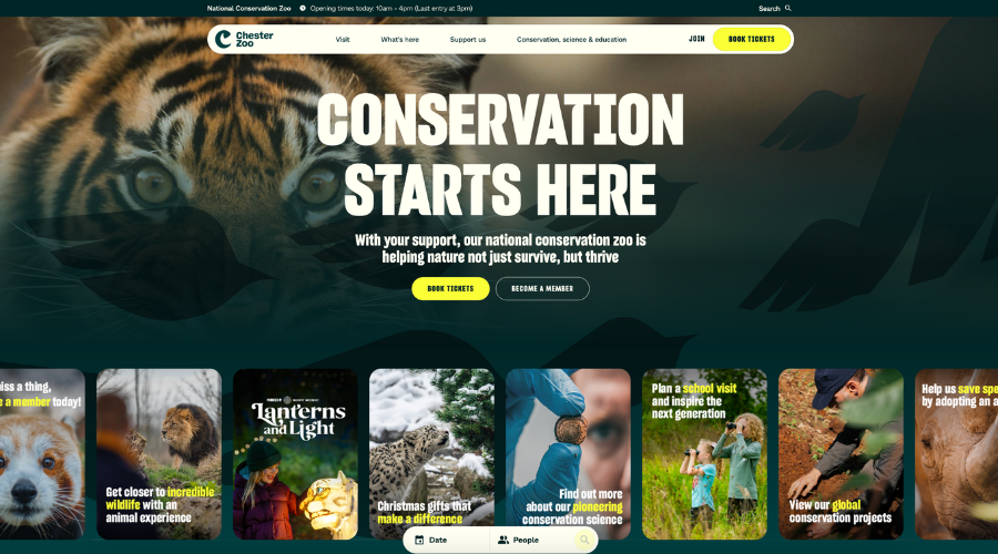 Chester Zoo is the UK’s favourite zoo as well as an international conservation charity, that prides itself on its global conservation work and impact on education, welcoming more than 2 million visitors every year, and working with 130,000 school children. Chester Zoo’s new rebrand, through How&How, is showcased using CTI Digital’s expertise in UX and integrated web builds. The website aims to modernise, engage, educate and delight visitors with a seamless digital experience.