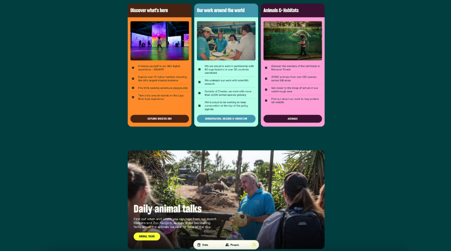 The project is a cornerstone of a strategic partnership between Chester Zoo and CTI Digital that emphasises modernisation and enhanced user engagement. Built on a foundation of user discovery and journey mapping, this project focused on reducing digital silos and maximising online presence for easy discoverability.
