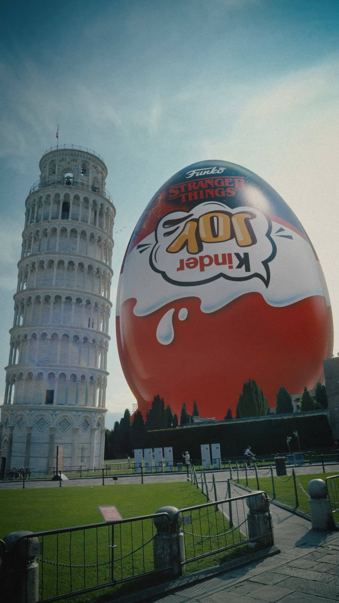 - Five global FOOH films – Iconic landmarks in London, Hollywood, Pisa, Berlin, and Madrid are transformed into the “Upside Down” as giant Kinder Joy eggs crash into each city and crack open to reveal FunkoPOP! Stranger Things toys.