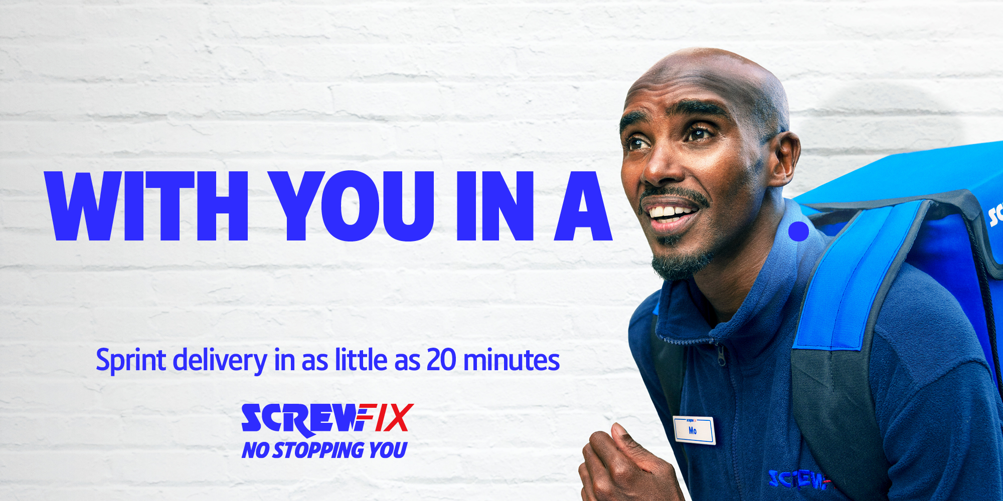 Following the successful unveiling of Screwfix’s new brand platform, ‘No Stopping You’, on 10 October, the retailer today launches the second instalment of the campaign — ‘The New Recruit’, featuring Sir Mo Farah — created in partnership with M+C Saatchi Group UK, to promote Screwfix’s market-leading Sprint delivery service, offering customers delivery in as little as 20 minutes.