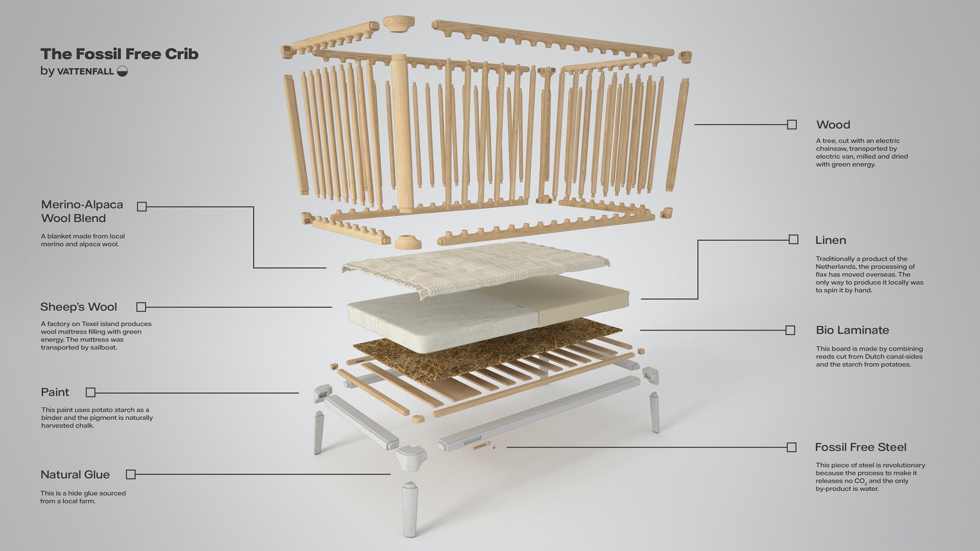 Swedish multinational energy firm Vattenfall has created what looks like a very ordinary cot. One that you might see in the home of any family with a small baby. But, while it might look familiar, this particular crib cost £22,289 to make – the high price is because it’s been made completely without the use of fossil fuels.